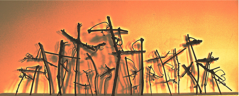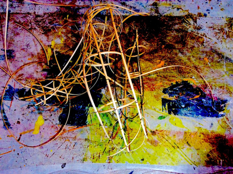 Selection from several art residencies (2015-2017). These are sculpture based digital art prints. Experiments with bamboo wall and floor sculptures at MassMOCA, Vine/tendrils superimposed against various symbolic backgrounds at SpreadArt, Detroit in 2016.