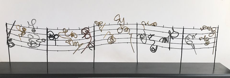 "MUSICAL/2" - maquette for outdoor large scale sculpture, 2020, steel & brass, 12"h x 48"w x 4"d