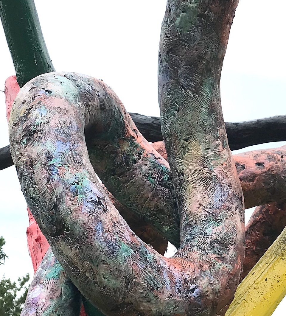 My obsession with vines and their tiny tendrils prompted me to experiment with different materials as well as scale. I see a monumentality in these complex twists and tangles as well as metaphors for human experiences.