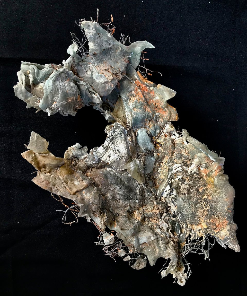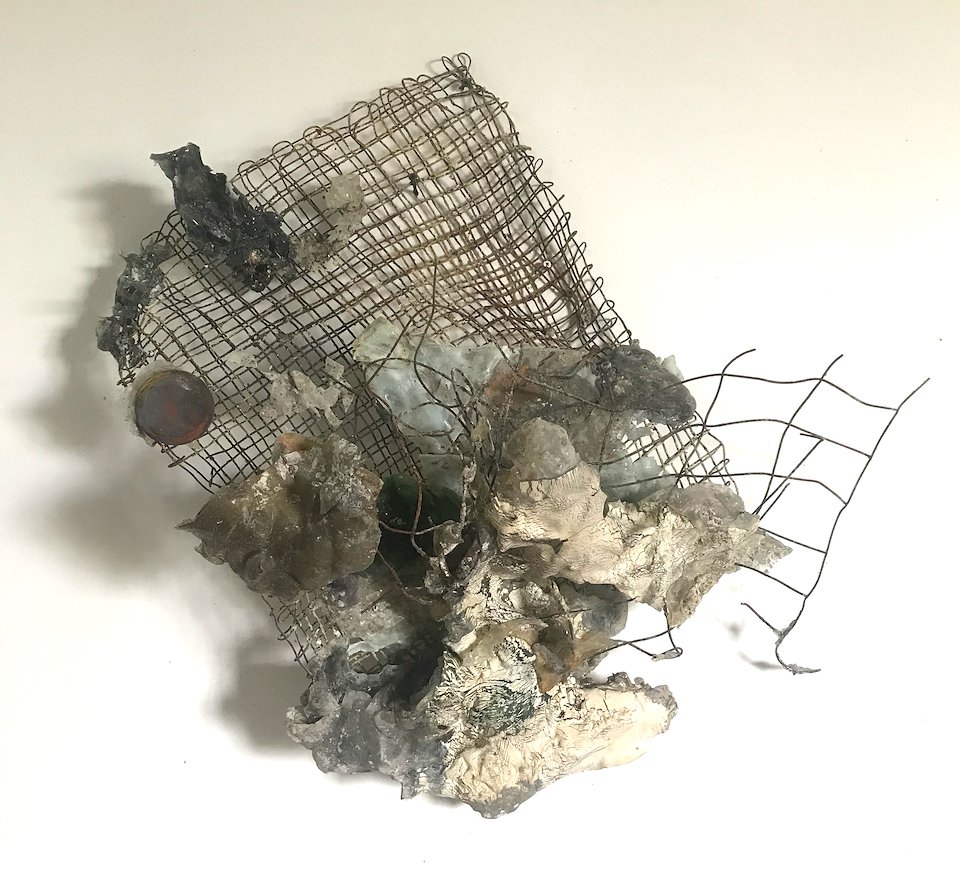 Mixed glass, scrap metal, 48"h x 46"w x 8"d